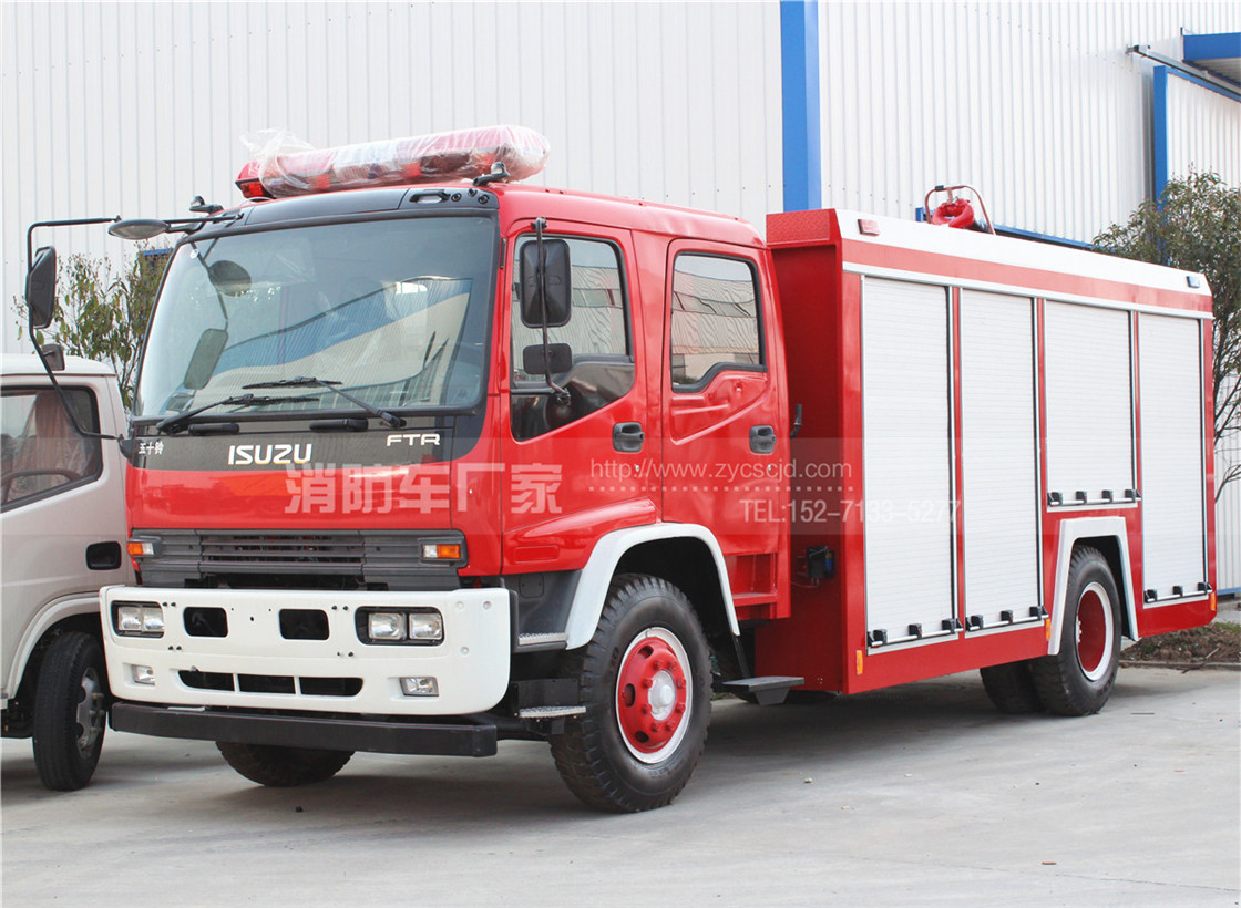 【五十鈴】FTR  6噸泡沫消防車,在五十鈴原裝二類底盤上改裝而成,載液量水4立方、泡沫2立方,配備常用消防器材,具有機動性好,操作方便,射程遠的特點,適用于專職隊、廠區、村鎮、工業園、港口、企業等場所。