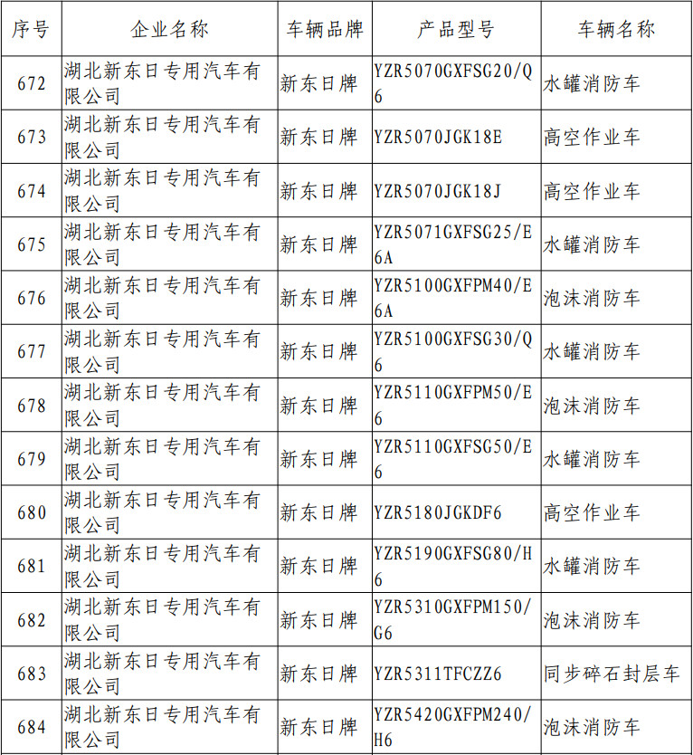 我公司有9款消防車免征下達。