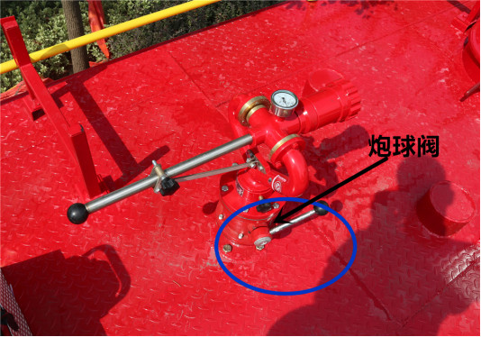 炮球閥打開一半,處于半開轉態。該閥門在車頂上方