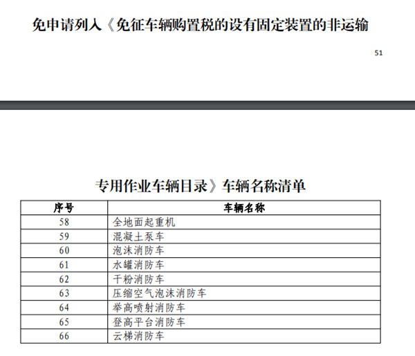 據了解器材消防車和搶險救援消防車目前不具備免征的條件,所以這兩款車沒有免征。